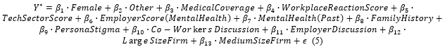 Tech Sector Score: A variable that measures the individual’s perception of how much importance the tech sector places on mental health issues (0-10). Patel [40] showed that industries prioritizing mental health foster a culture of openness, reducing absenteeism. Conversely, sectors where mental health is undervalued may see higher absenteeism due to unmet needs for support.