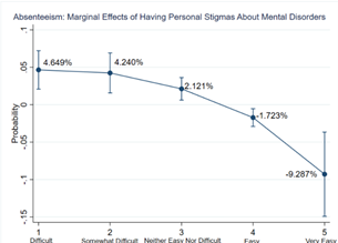 Figure 7: Marginal Effects of having Personal Stigmas about Mental Health Issues - Absenteeism Model.
