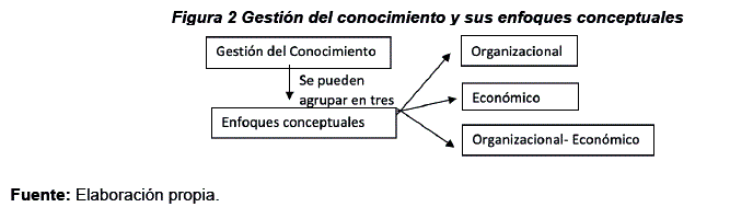 En el análisis de las definiciones presentadas se ve tres enfoques de gestión del conocimiento: en un primer momento gestión del conocimiento es considerado desde un enfoque organizacional, también ha sido reflexionado desde un enfoque económico y como tercer enfoque puede concebirse gestión del conocimiento por la combinación de ambos enfoques tanto lo organizacional y lo económico.