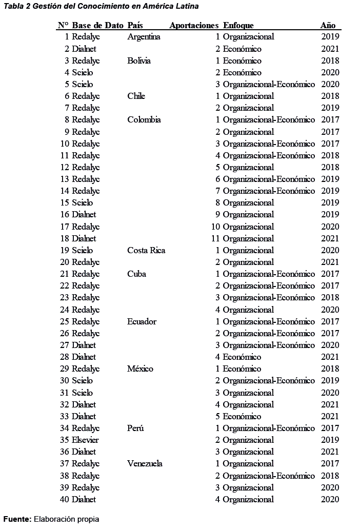 2. Gestión del conocimiento: una mirada conceptual desde América Latina en el último quinquenio