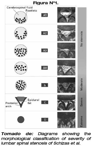 La clasificación de canal lumbar estrecho mediante la RMN de Schiza y col. nos permite un adecuado manejo quirúrgico.8