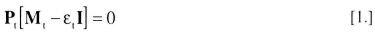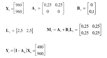 At es la matriz de coeficientes de insumo por unidad de producto; Lt es el vector de coeficientes de trabajo vivo (jornadas) por unidad de producto, y Bt es el vector de salario real, la cantidad de medios de consumo recibidos por jornada de trabajo. La matriz irreducible Mt está formada por los coeficientes de insumo (primera fila) y salario real por unidad de producto (segunda fila). En condiciones estacionarias, el producto neto físico es el vector Yt.