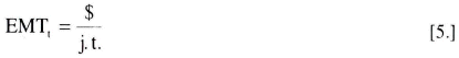 t= P$t,(1/EMTt) = [3,33 j.t. 3,33 j.t.], o bien, mediante P