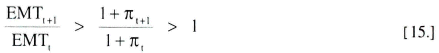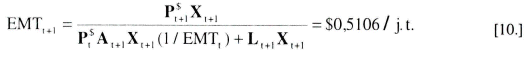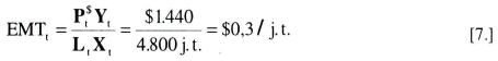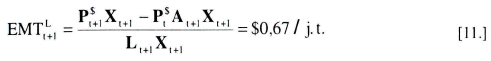 (Un método más general de cálculo de la EMT se expondrá en la sección 3.) De acuerdo con la fórmula anterior, tenemos que, en el período t, una jornada de trabajo se expresa a través de $0,3, o, en otras palabras, $1 representa 1/0,3 = 3,33 jornadas de trabajo.