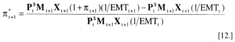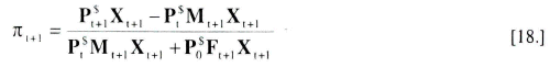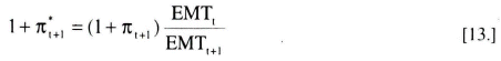 Debe notarse que, debido al curso forzoso del papel moneda, el trabajo social se expresa necesariamente por medio del peso. La EMT, puede definirse, pues, como la cantidad de pesos que representan una unidad de tiempo de trabajo social en un período determinado17. (Se verá en la sección 4 que la ecuación EMTt = Gt/