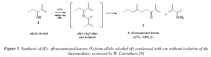 unsaturated ketone 5 [9]. The reaction passes directly over the intermediate allyl-vinyl ether which is not isolated [9]. The presence of the isomer Z has not been detected [9,13], see Fig. 5; and see Fig. 6 for a mechanistic explanation.