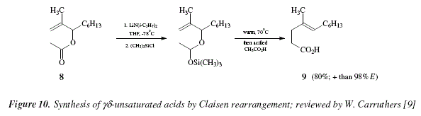 unsaturated ester [9]. See Fig. 7. In a first part, a mixed orthoester is formed, and methanol is dispatched to afford a ketene acetal. This is the substrate that by cyclisation gives the