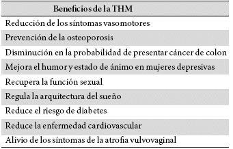En los beneficios de la THM se destaca que, en mujeres posmenopáusicas jóvenes, seleccionadas apropiadamente cerca del inicio de la menopausia, es eficaz y segura, de acuerdo con las recomendaciones de los consensos.