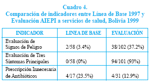 Evaluación de la estrategia AIEPI en servicios de salud, primera prueba mundial, Bolivia 1999(1)Evaluation of the IMCI strategy in the public health services, firths study, Bolivia 1999