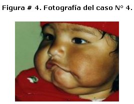 Caso Nº 4.- Niña de 9 meses de edad, nacida por parto eutocico de madre joven quien indica haber consumido dipirona y antigripales durante el embarazo. Al examen físico se observó una ligera asimetría facial especialmente de maxilar inferior, escotadura labial izquierda y presencia de tragos accesorios en el mismo lado. Figura #4.