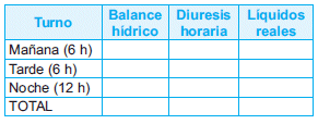 b. Balance hídrico por turno o en periodos de tiempo más cortos, dependiendo de la gravedad del paciente.