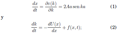 Las ecuaciónes semiclasicas canónicas de movimiento (Ashcroft & Mermin 1976) para un electron de enlace fuerte moviéndose en una dimension bajo la influencia de un potencial estático U(x) y de un campo electrico rápidamente oscilante f(x, t), estan dadas por
