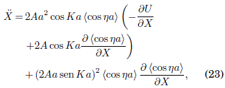 que es el mismo resultado ya conocido en el continuo para el potencial efectivo Ueff(X) (Kapitza 1951; Bandyopadhyay & Dattagupta 2008; Rahav et al. 2003). Notablemente, la correccion dinámica de alta frecuencia del orden de O(ω-2) en la Ec. (26) es formalmente similar a aquella asociada al límite del continuo, lo que se aplica asimismo a las aceleraciones respectivas. Podramos conjeturar si acaso esta similitud se mantiene (cuando ω → ∞) hasta el siguiente orden O(ω-4) entre el resultado en el continuo y el resultado (aun desconocido) en la red. Finalmente, resulta interesante señalar que de la Ec. (17) para
