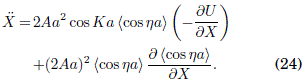 Consideremos el movimiento del oscilador armonico en la red (Longhi 2007; Gallinar & Chalbaud 1991) sujeto ademas aun campo armónico de alta frecuencia. Tomemos U(x) = kx2/2 en la Ec.(26) y f(x,t) = -kxcosωt, por simplicidad, a fin de obtener el potencial efectivo Ueff(X) dado por