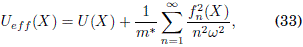 , el potencial efectivo Ueff(X) resulta ser (m* es la masa en el continuo)