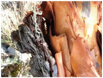 el aspecto laminar de la corteza, con varias capas (Fotografía por V. Serrudo).