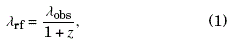 El primer paso, conocido como corrección por redshift, consiste en llevar todos los espectros de cuásares a un mismo sistema de referencia de longitudes de onda denominado sistema en reposo (restframe), en este sistema las longitudes de onda λrf se relacionan con las observadas λobs por: