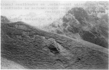 Fig. 2: Destrucción del césped: Acción combinada de la pisada del ganado y la soliflucción por congelamiento.