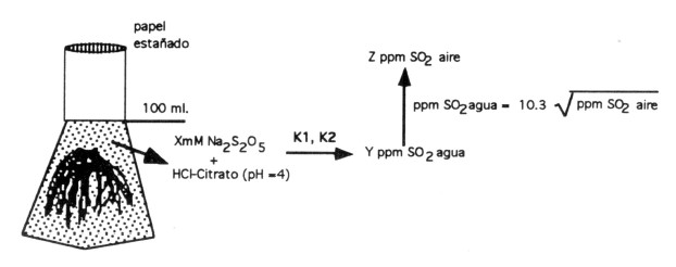 En estas pruebas, aún sin material vegetal, existe una variación muy grande en los datos obtenidos. Por ejemplo, para la concentración de 0,01% de sulfito se calcularon presiones parciales de SO2 que oscilan entre 0,11 y 5,6 ppm con una desviación estándar de 2,025.