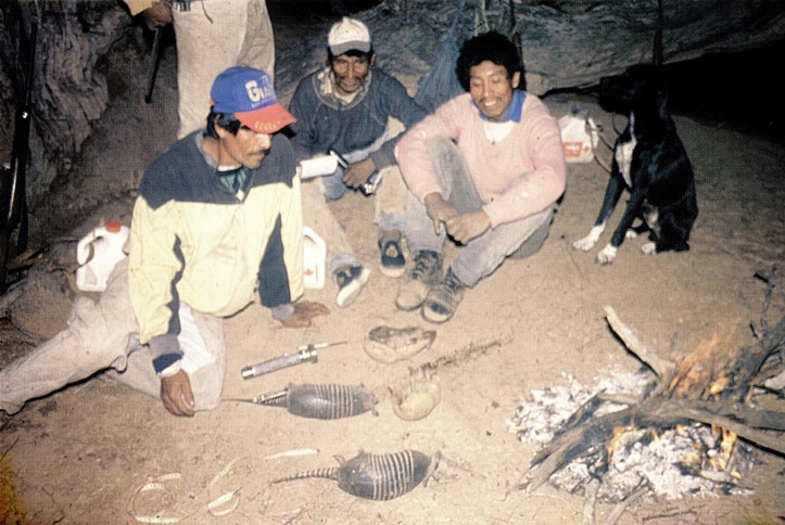 La cacería comercial en los años 1960-1970 casi exterminó varias especies de gatos, zorros y pecaríes (Taber, 1997;Taber et al., 1994). La Veda General e Indefinida de 1986 puso fin a esta explotación, pero sigue la cacería deportiva por cazadores de Santa Cruz y otros centros urbanos. Otra amenaza al Chaco es la expansión de obras petroleras, como la apertura de brechas de exploración en nuevas concesiones y la construcción del gasoducto Bolivia-Brasil.