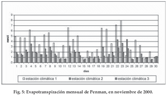 El análisis de la evapotranspiración potencial (pET) se realizó en base a los datos horarios según la fórmula modificada de Penman de Doorenbos & Pruitt (1988). Como ejemplo de la pET.