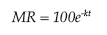 siendo MR la masa remanente, en porcentaje respecto de la masa inicial, k la tasa de descomposición anual y t el tiempo en años. El modelo exponencial doble se expresa por la ecuación: