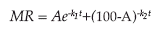 en que A es la fracción lábil de la materia orgánica, k1 la tasa anual de descomposición de esta fracción y k2 la tasa anual de descomposición de la fracción recalcitrante de la materia orgánica. Se asume que esta fracción recalcitrante es 100-A. Al igual que en la ecuación anterior, t es el tiempo en años.