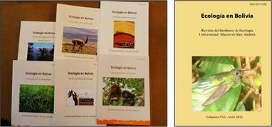 1 La revista Ecología en Bolivia: A partir de 1982, el Instituto de Ecología organizó comités editoriales para respaldar el funcionamiento de la revista científica “Ecología en Bolivia” y así difundir la producción científica, a nivel institucional y de la región. En sus primeros años contó con el coauspicio del Centro Pedagógico y Cultural Portales. Hasta 1994 fue beneficiada con financiamiento de la GiZ al Instituto de Ecología; entre 1995 a comienzos de 1997 se obtuvo el apoyo financiero del Fondo Nacional de Medio Ambiente (FONAMA) y desde fines de 1997, el Instituto nuevamente asignó fondos para la diagramación, impresión y envío. No solo se incluyen los dos números por año, sino que la revista también ha publicado números especiales de determinados proyectos del instituto. El material impreso fue distribuido a nivel nacional e internacional, bajo un programa de intercambio con aproximadamente 250 instituciones, editoriales y centros de investigación afines.