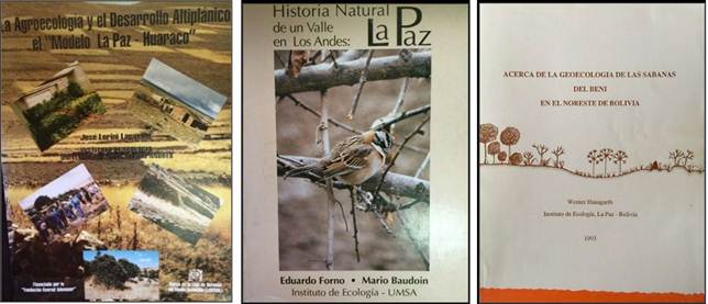 Moraes R., M. 2016. Instituto de Ecología. Insumo elaborado para la Memoria Institucional 1966-2016, Facultad de Ciencias Puras y Naturales, Universidad Mayor de San Andrés, La Paz. 35 p.