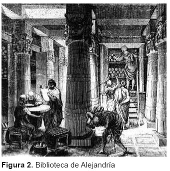 Con Alejandro el Magno y la fundación de Alejandría dice Laíncomienza el periodo "helénico" de la cultura griega, y muy pronto esta ciudad grecoegipcia, con su Museo y su célebre Biblioteca (Fig. 2), va convertirse en el más importante centro intelectual de la época. Además de la medicina, la matemática (Euclides, Diofanto), la astronomía (Eratóstenes, Aristarco, Hiparco, Ptolomeo), la física (Herón, Filón), y otras muchas más ciencias, allí fueron brillantemente cultivadas.5