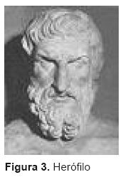 Herófilo de Calcedonia, nació en Bitinia el año 340 a.C., hoy Kadiköy, Turquía, (Fig. 3), estudió la ciencia y la práctica de medicina en la escuela de Praxágoras, junto a Erasístrato, fundó la Escuela Médica de Alejandría. Plinio lo llamó el Oráculo de la Medicina. Fue discípulo de Crisipo de Cnido y de Praxágoras de Cos. Se le considera, según Galeno, el primer anatomista de la antigüedad.9