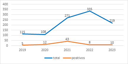 Tabla 4 Número de pacientes analizados y número de casos positivos detectados en el periodo de estudio 2019-2023