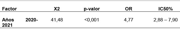 Para comprender mejor el impacto de la COVID-19 en la epidemiología de la TBEP, la Tabla 5 muestra los resultados de la asociación estadística entre ambas variables, proporcionando evidencia cuantitativa de esta relación.