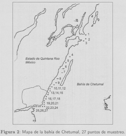La Bahía de Chetumal (Fig. 1) es un cuerpo de agua semi-cerrado, que constituye el hábitat de diversas especies vegetales y animales, algunas de las cuales se encuentran en peligro de extinción, y posee, además, la mayor población de las siguientes especies: los manatíes (Trichechus manatus), lagartos (Crocodrilus moreletti) y nutrias del río (al parecer de la especie Lutra Longicaudis) del Caribe Mexicano. Este ecosistema fue declarado como Zona Sujeta a Conservación Ecológica y Santuario del Manatí en 1996.