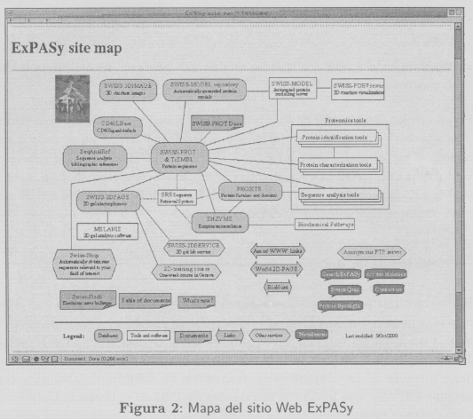 ExPASy aloja varias bases de datos que han sido parcial o totalmente desarrolladas por el SIB, constituyendo el corazón del sitio Web (ver figura 2), entre las que se destacan: