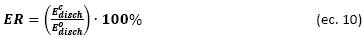 By analogy with the CR calculation, ER is defined as the relationship between the energy delivered in the last cycle discharge and the energy delivered in the first cycle discharge [7]: