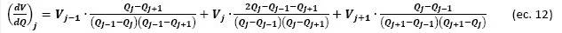The voltage derivative with respect to capacity, dV/dQ, is calculated according to the first analytical derivative of a Lagrangian polynomial approximation of the second degree: