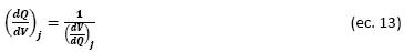 In contrast, the capacity derivative with respect to voltage, dQ/dV, is calculated from the inverse function of Eq. (12):