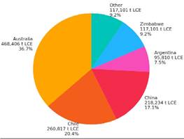 Figura 2. Principales Países productores en la fase de minería de Litio. Fuente: (U.S. Geological Survey, 2025)