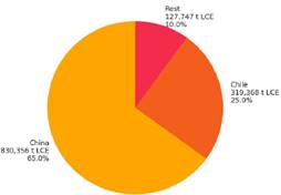 Figura 3. Principales Países productores en la fase de refinado del Litio. Fuente: (U.S. Geological Survey, 2025)