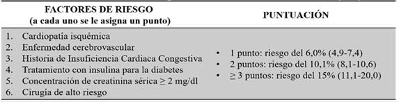 CUADRO 1: Indice de Riesgo Cardiaco Revisado (RCRI en ingles)