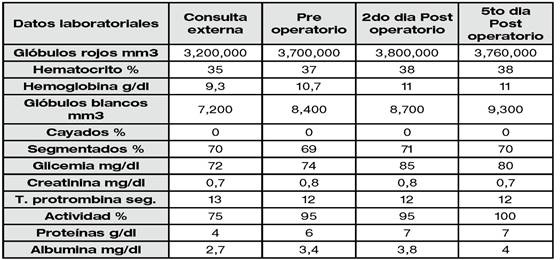 Se realiza nuevo control laboratorial preoperatorio (TABLA 1).