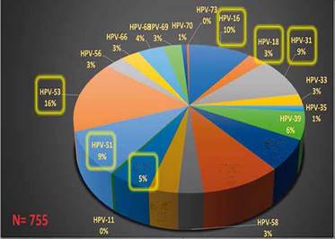 Cuadro 3 Frecuencia de genotipo del virus del papiloma humano. Área biología molecular. 2023
