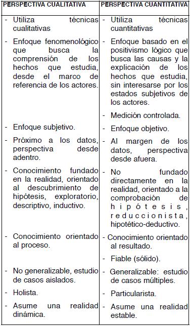 Según las bases teórico filosóficas las dos perspectivas cuantitativa y cualitativa implican (Cf. Wimmer y Dominick 1996; Orozco 1997; Briones 1997; Aguirre2000):