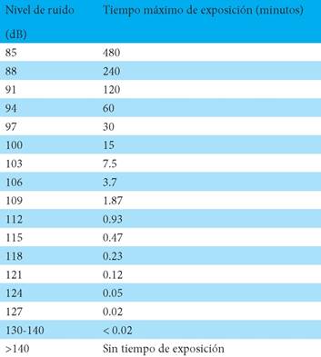 Tabla 1: Guía de exposición segura al ruido según nivel de decibelios