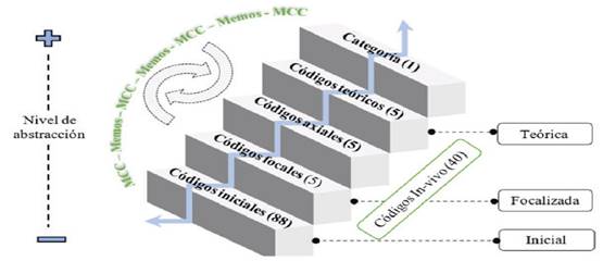 Quedando como resultado final una categoría que se denominó "Transición de la educación virtual". Esta categoría de mayor abstracción teórica emergió de la superposición, comparación y contrastación de los códigos focales, axiales y teóricos.