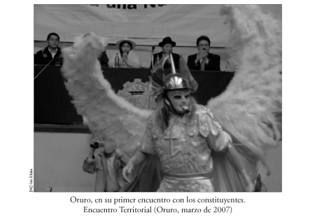 Fue a partir de este momento que resurgieron las contradicciones al interior de las comisiones y subcomisiones, alentadas, por un lado, por la fuerza mayoritaria y sus aliados naturales, quienes sostenían posiciones e intereses del movimiento popular; y por el otro lado, las fuerzas políticas que representaban las estructuras en crisis. Algunos analistas suelen o prefieren caracterizar a las partes de esta contradicción política como izquierda y derecha. O el encuentro de las fuerzas del occidente y las fuerzas del oriente o la media luna. Personalmente, prefiero remitirme a la lucha entre las fuerzas progresistas o que propugnan el desarrollo y la incorporación social, y las fuerzas conservadoras que impiden el desarrollo e incorporación de grandes sectores de la sociedad. La sociedad boliviana mayoritaria experimenta e impulsa un proceso histórico que busca el nacimiento de nuevas relaciones económicas y políticas, frente a fuerzas sociales con poder económico y político que impiden las transformaciones estructurales, más por el temor al cambio. Parte esencial de todo este proceso histórico social son los Encuentros Territoriales que se convirtieron en la fuente principal para la elaboración de los artículos constitucionales. Hubieron, en el camino, afirmaciones sin sustento que buscaron empañar el proceso, como aquella que señalaba que el MAS ya tenía una Constitución guardada bajo la manga, o que la nueva Constitución vino diseñada del exterior. Estos argumentos sólo pretendían desacreditar el trabajo realizado; pero, como siempre, es la realidad concreta la que muestra la verdad.