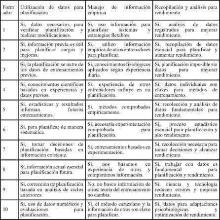 Las entrevistas con entrenadores nacionales radicados en países europeos revelan una tendencia clara: todos enfatizan la importancia crucial de utilizar datos recopilados en la planificación de entrenamientos. Este enfoque sistemático es considerado indispensable para establecer límites adecuados y dosificar el entrenamiento de forma personalizada, lo cual permite una predicción más precisa del rendimiento máximo de los atletas.