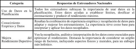 4.1.6. Resultados e interpretación de la entrevista a entrenadores nacionales