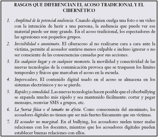 Si sintetizamos las evidencias de distintos estudios sobre ciberbullying: